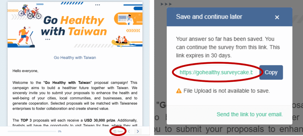 - You can revise your responses anytime before submitting them by using the save function at the bottom right corner, which provides a link. This link will expire in 30 days.
